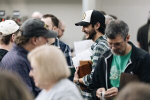 Worship Conference attendees fellowship before a session on Saturday at First Baptist Church in Cabot. CABOT, Ark. — Hundreds of worship leaders, musicians and technical volunteers from