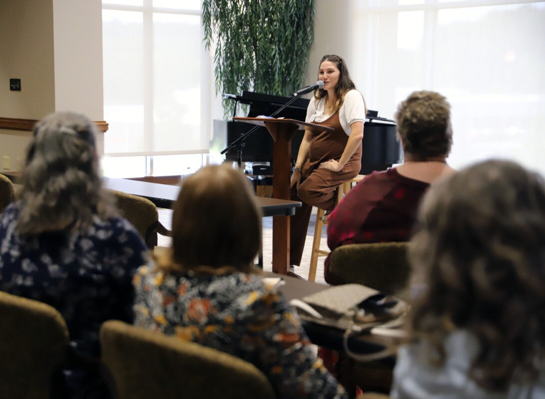 AABS President Mallory Mertens makes announcements in opening session. (Staff photo by Mary Alford) LITTLE ROCK, Ark. – Ministry assistants are oftentimes the first point