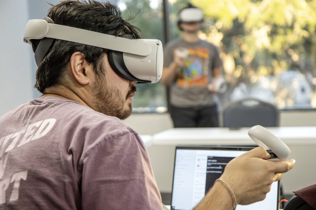 Matthew Banther lifted his VR headset and blinked at the room around him inside Calvary Church in Clearwater, Florida. This didn’t look like an average mission trip training. It looked like a group of friends hanging out, lost in their own digital universes.