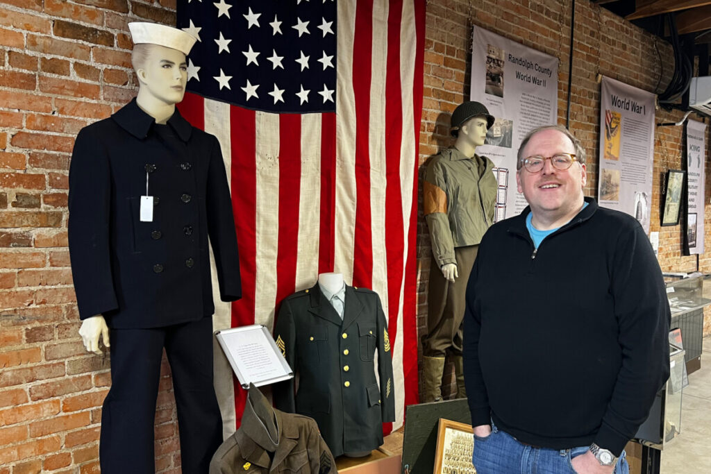 Dr. Rodney Harris, chair of WBU’s Department of History and Political Science, stands next to an exhibit at the Randolph County Heritage Museum. (Submitted)